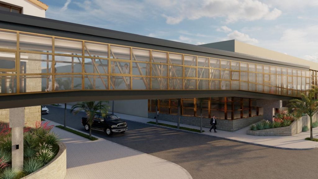 La obra que une el Hotel Uthgra Sasso con su casino por sobre calle Medrano, es el corolario de la puesta en valor de este edificio centenario en dicho sector de la ciudad