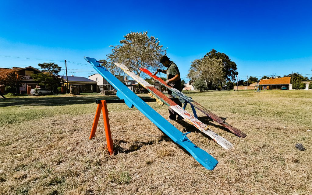 Las tareas incluyeron el corte de césped en la totalidad de la superficie, lo que abarcó tanto a los canteros centrales como a los contornos de la plaza. En cuanto a la infraestructura, se realizó la reparación de juegos infantiles y de la estructura de las hamacas. Asimismo, en el sector deportivo, se reparó el tablero de básquet y se instalaron nuevos arcos de fútbol.