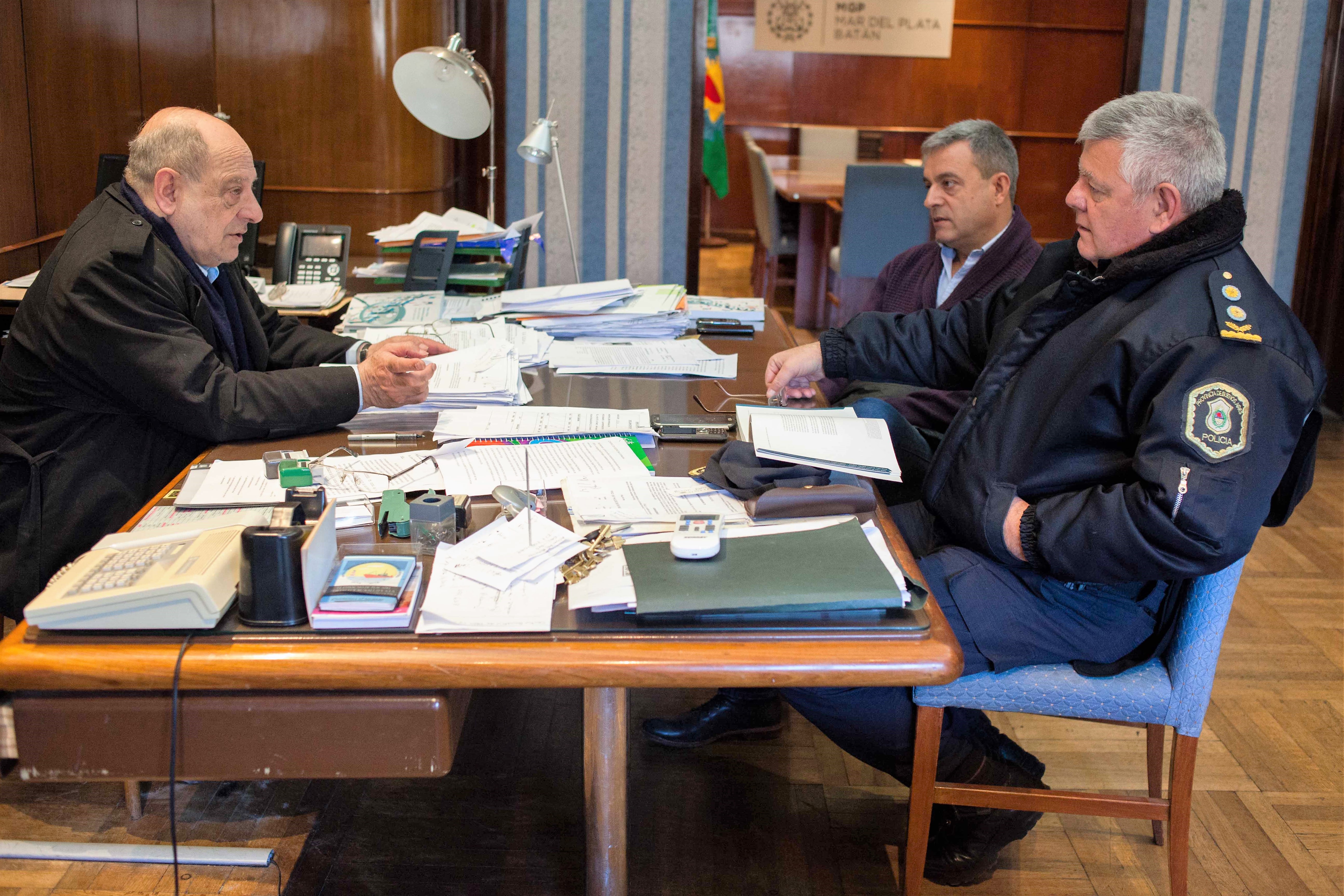 El intendente Carlos Fernando Arroyo confeccionó una mesa de trabajo junto al jefe de la Departamental de la Policía Bonaerense, Carlos Testini, y el jefe de la Policía Local, Fernando Telpuk, para abordar el tema de la seguridad en el partido de General Pueyrredon y coincidir en el refuerzo de los operativos, tanto en el macrocentro como en los distintos barrios de la periferia.