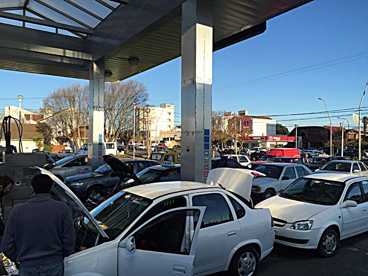 Esta situación provocó que en la ciudad desde la tarde se vieran largas colas en las estaciones para llenar los tanques de gas. Sólo por mencionar un ejemplo, avenida Constitución y Tejedor hubo más de 100 metros de cola desde las 17. “Esto va a ser todos los días hasta que se repongan las condiciones preexistentes. Por ahora nadie sabe bien lo que está pasando ni cuanto tiempo va a tardar en acomodarse la situación. En principio es por tiempo indeterminado”, le explicó a LA CAPITAL, Patricio Delfino, integrante de la Cámara de Expendedores de Combustible. Y, enseguida, agregó: “Puede tener algún problema el que no se enteró a tiempo de la noticia y no cargó el tanque. Pero ya desde mañana (por hoy) estimo que se tomarán precauciones y las cargas se realizarán más temprano”.