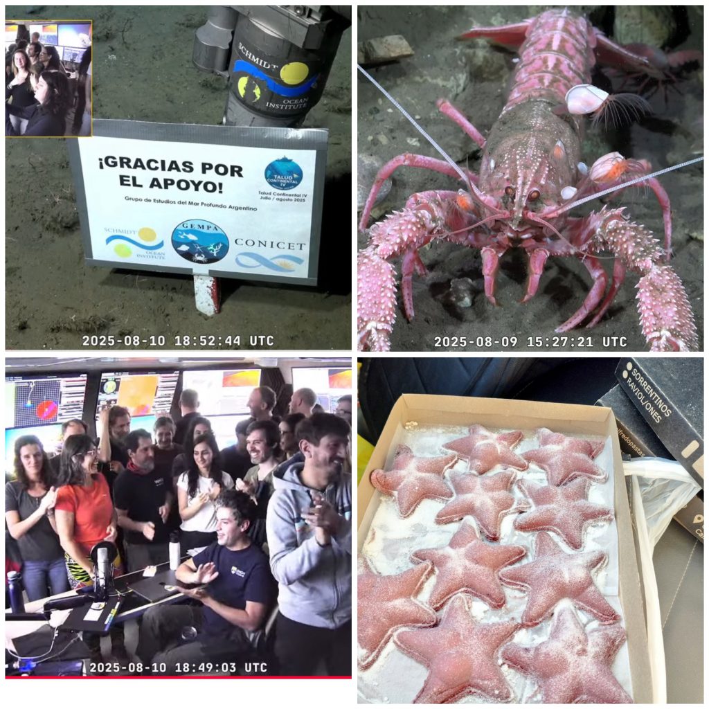 En la tarde del domingo, el cierre de la transmisión en vivo desde el cañón submarino Mar del Plata marcó un hito para la oceanografía argentina. A las 16, la transmisión concluyó con un gesto simbólico: los científicos sumergieron un cartel de agradecimiento por el apoyo de las miles de personas que acompañaron el hito. Hubo aplausos y mucha emoción por lo vivido durante las últimas dos semanas. El proyecto, impulsado por Conicet junto al Schmidt Ocean Institute, permitió durante semanas que miles de personas siguieran en tiempo real la labor del equipo científico y las maniobras del robot submarino ROV SuBastian, que llegó hasta los 3.900 metros de profundidad. El canal de YouTube, que registró a miles y miles de espectadores con gran participación del público, ofreció imágenes inéditas de especies, hábitats y la interacción de los investigadores, quienes compartieron sus hallazgos y respondieron preguntas en directo. “¡Gracias por el apoyo!”. Con ese mensaje, el Conicet cerró una transmisión histórica desde las profundidades del Mar Argentino. Lo que comenzó como un relevamiento científico de la fauna y flora del Cañón Submarino Mar del Plata se convirtió en un fenómeno seguido por miles de personas que, día a día, “se sumergían” junto a los investigadores para descubrir el ecosistema submarino. La “figura” del streaming, sin duda, fue la simpática “estrella de mar culona” ya convertido en otro emblema de Mar del Plata.