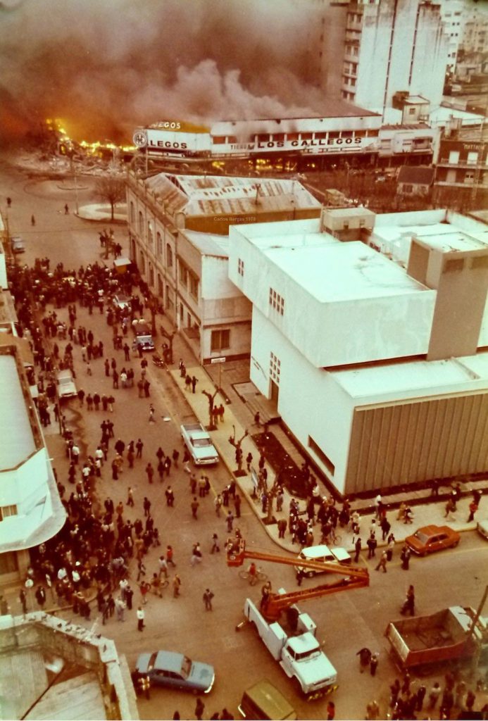 Para las Fiestas, imprimían catálogos especiales –a menudo en papel ilustración, algo poco común–, y en las vidrieras armaban escenas navideñas con muñecos animados, luces y nieve artificial que atraían multitudes. En invierno, la tienda organizaba liquidaciones de temporada y ofrecía crédito personal, algo innovador para la época. Tampoco podrá olvidarse lo sucedido en la mañana del 31 de julio de 1978, cuando un incendio devastador se desató en la casa central –el local original, de Belgrano y La Rioja– y la consumió totalmente en pocas horas. El edificio ocupaba casi toda una manzana y contaba con más de 12.000 m² cubiertos. En ese entonces aún flameaban las banderas del Mundial 1978, y la escena fue apocalíptica y emotiva: humo negro desde kilómetros, explosiones, gente corriendo, vidrieras incendiadas.