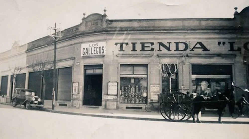Un poco de historia. La tienda Los Gallegos comenzó el 8 de octubre de 1912, cuando José Navarro y Rafael Sánchez –inmigrantes españoles– abrieron un local de apenas 200 metros cuadrados en la Diagonal Pueyrredon, en plena zona del arroyo Las Chacras. El nombre oficial era “Baratillo Los Gallegos”, pero como muchos empleados eran de Galicia, la gente empezó a decir simplemente “la tienda de los gallegos”, y así quedó para siempre. Allí vendían de todo: telas, calzado, indumentaria, lencería, perfumería, artículos para el hogar, un bazar de esencia europea en una ciudad en formación. Con el auge del turismo y el crecimiento urbano, el comercio se convirtió en una tienda por departamentos de primera clase. En los años 30, introdujeron los primeros trajes de baño enterizos para damas, una novedad en la moda local. Llegaron a tener sucursales, como la de Dolores, y empleaban hasta mil personas en temporada alta entre todas las sedes. Los anuncios eran un arte. Frases como “Viaje a Mar del Plata sin valija: Los Gallegos tiene de todo” o “Donde la elegancia no cuesta más” quedaron en la memoria de los marplatenses.