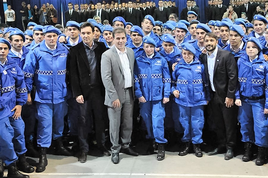El ministro Ritondo junto a efectivos de la Policía Local.