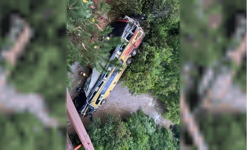 El accidente ocurrió esta madrugada sobre la ruta nacional 14, en medio de una intensa niebla. El micro, que viajaba desde Oberá hacia Campo Viera con unos 50 pasajeros, cayó al arroyo Yazá tras impactar contra un automóvil.