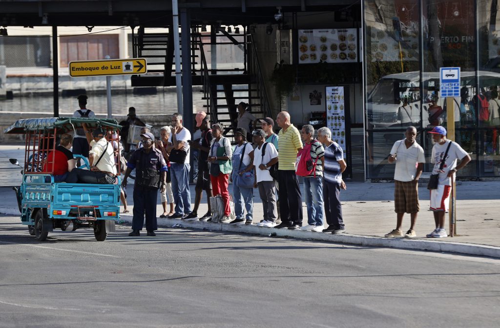 Personas esperan la llegada del transporte público en una vía de la Habana (Cuba). Foto: EFE | Ernesto Mastrascusa.