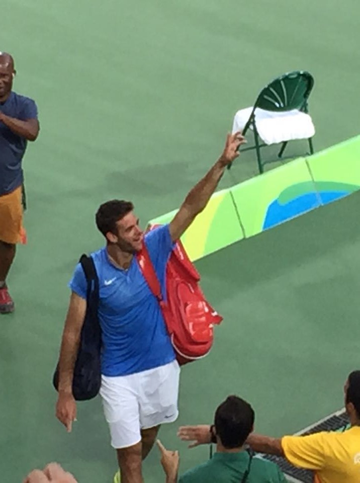 Segundo después de terminar su partido con Nadal, el tandilense Juan Martín Del Potro se dio el gusto de festejar con parte de los argentinos que lo alentaron en el estadio carioca. Un video emocionante.