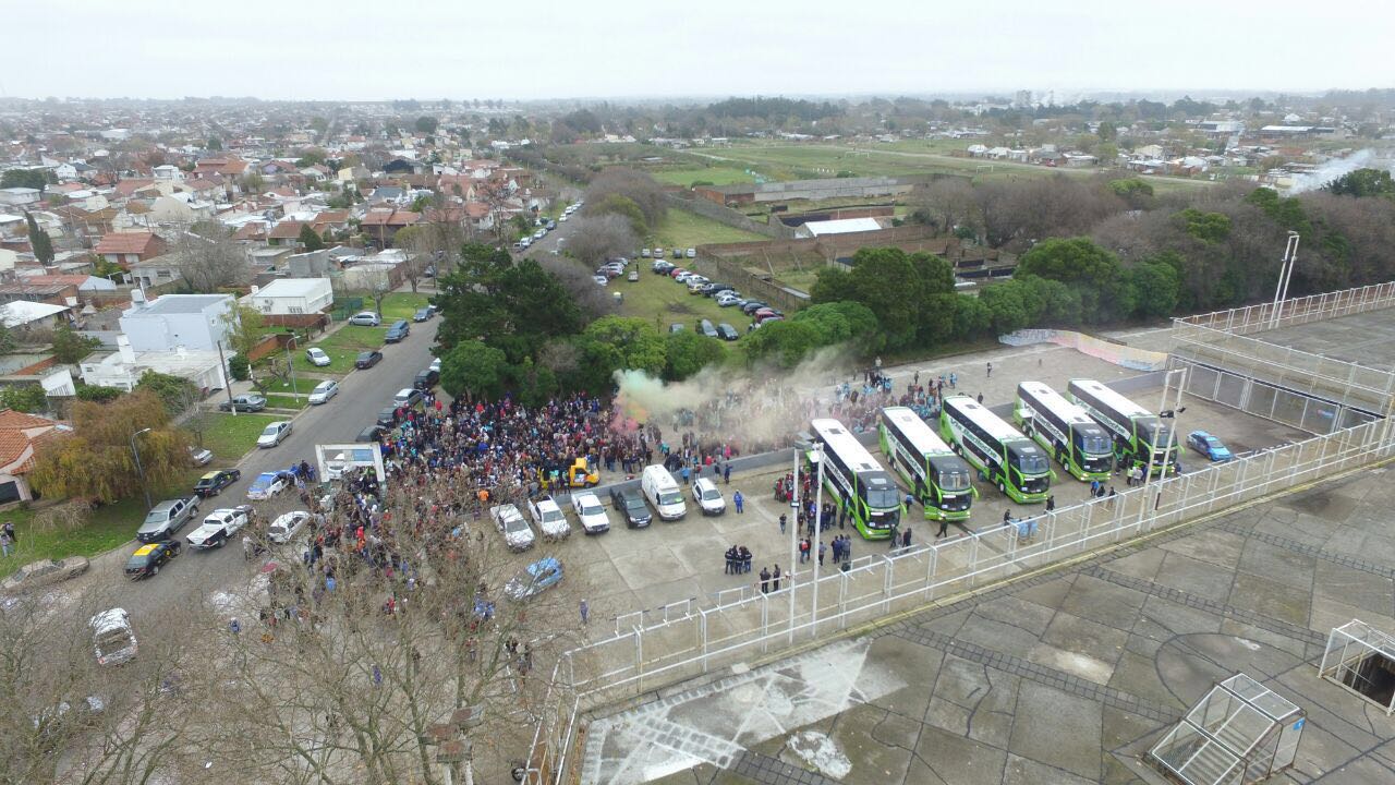 Cientos de jóvenes parten rumbo al tradicional viaje de egresados. Mirá las imágenes de la despedida desde el aire, en el estadio Minella