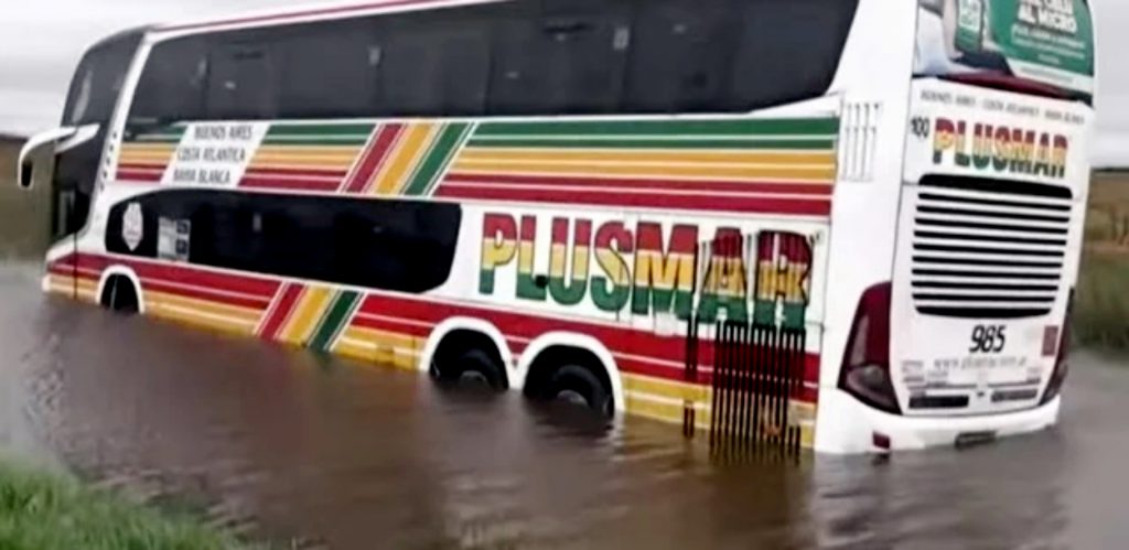 “Una ráfaga nos sacó de la ruta”, relató el chofer, que junto a unos 40 pasajeros debió ser rescatado en lancha por personal de emergencia. Todos fueron trasladados a otro colectivo para continuar viaje hacia la localidad de América, en el oeste bonaerense, sin registrarse heridos ni víctimas fatales.