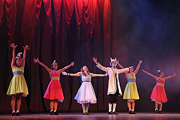 Con un despliegue de bailarines, actores y cantantes, se vive la maravillosa historia de Alicia, con personajes increíblemente bellos y muy raros, un conejo blanco que lleva un reloj y que siempre está apurado, una oruga que nunca recuerda su nombre, un gato que se evapora dejando sólo su sonrisa, un sombrerero con quien Alicia tomará el té más alocado de su vida, y todo para conocer a la archifamosa Reina de Corazones, fashionista como pocas, y amante fervorosa de los cupcake.