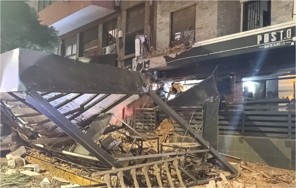 El derrumbe se produjo alrededor de las 23.30 del sábado, en el inmueble ubicado en Boulevard San Juan 673, en el barrio Güemes, y alcanzó de lleno al bar que funcionaba en la planta baja, donde en ese momento había varias personas.