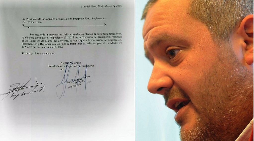 El trámite, efectuado este mediodía, se llevó a cabo de una manera llamativa ya que la nota mediante la cual se solicitó que se reúna la comisión de Legislación lleva la firma del jefe del bloque de la Agrupación Atlántica, Guillemo Arroyo y la del radical Nicolás Maiorano, quien si bien preside la comisión de Transporte hoy se encuentra de licencia.