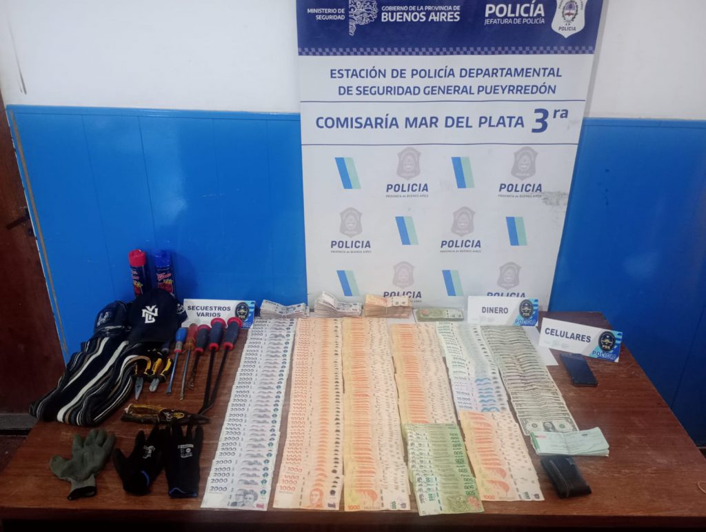 En poder de los acusados, la policía secuestró 1.168 dólares y 1.680.790 pesos; 37 cheques por distintos importes; dos cinceles metálicos, seis destornilladores, dos pinzas y una tijera alicate; y dos pares de guantes.