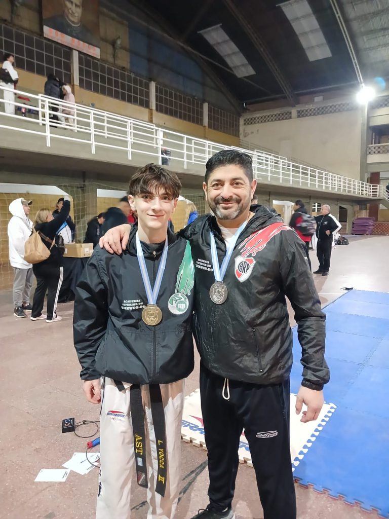 Lautaro Yocca luce orgulloso su medalla en compañía de su padre Mariano, instructor y competidor a la vez. Gran actuación de la delegación marplatense en la Copa Provincia.