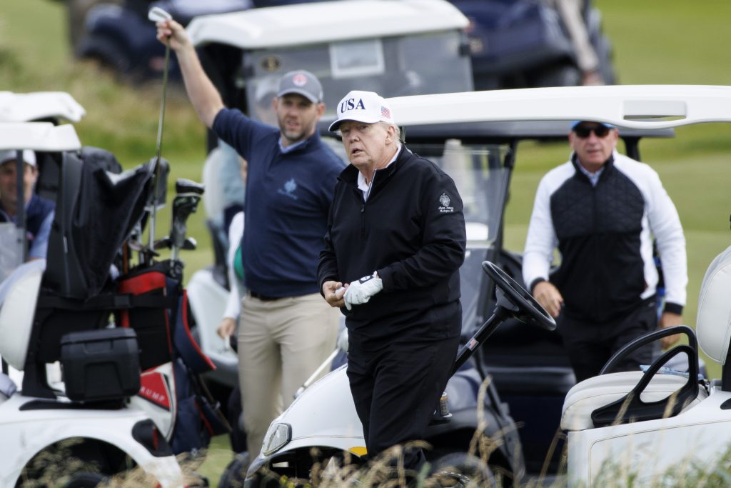 Donald J. Trump jugando en el campo de golf Trump Turnberry durante una visita privada en Turnberry, Escocia. Foto: EFE | EPA | Tolga Akmen.