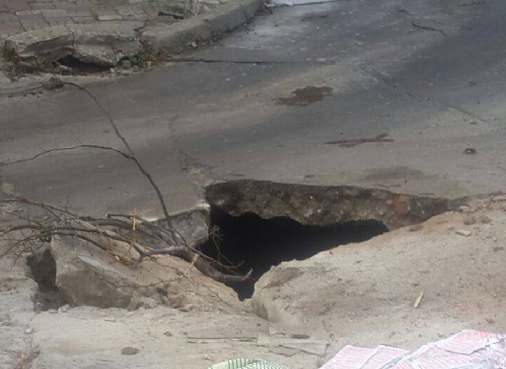 En Gascón y Marconi el asfalto está destrozado de una llamativa manera.