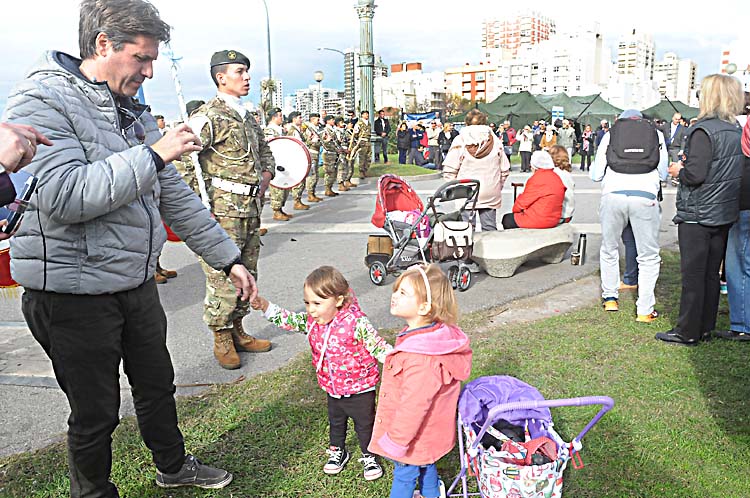La tradicional Plaza España, en su sector de Libertad y la costa, mostró ayer un panorama singular. Es que efectivos del Grupo de Defensa Antiaérea 601 realizaron allí una serie de actividades para celebrar junto a las familias marplatenses el 207º aniversario de la creación del Ejército Argentino.