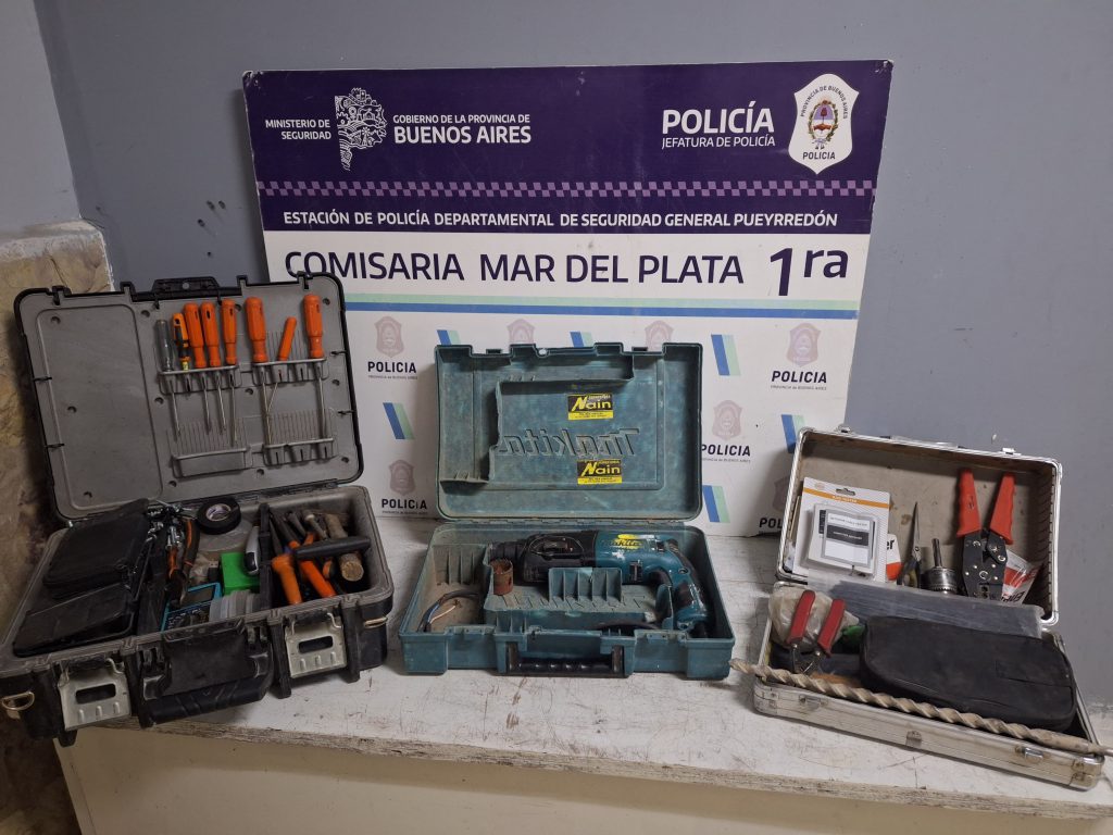 El procedimiento se concretó en San Martín, entre La Rioja e Hipólito Yrigoyen, cuando efectivos de Prefectura Naval sorprendieron al sospechoso mientras ocultaba una caja de herramientas de mano, un martillo percutor y una caja con instrumentos de medición.