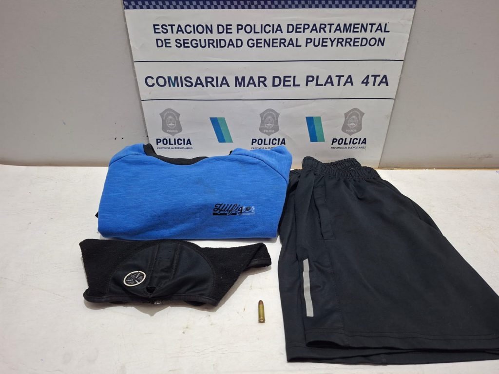 Durante el procedimiento, se secuestraron diversas prendas de vestir que coincidirían con las utilizadas al momento del asalto (un cuello polar negro, un buzo azul con puños negros y un short deportivo negro con líneas refractarias) y una munición calibre 32.