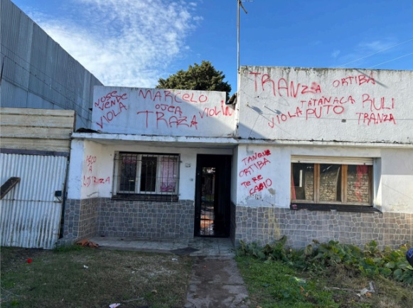 Según consta en una denuncia, las personas que habían usurpado amenazaron de muerte a los dueños del lugar y “escracharon” el frente de la casa con insultos y la leyenda “no se vende”.