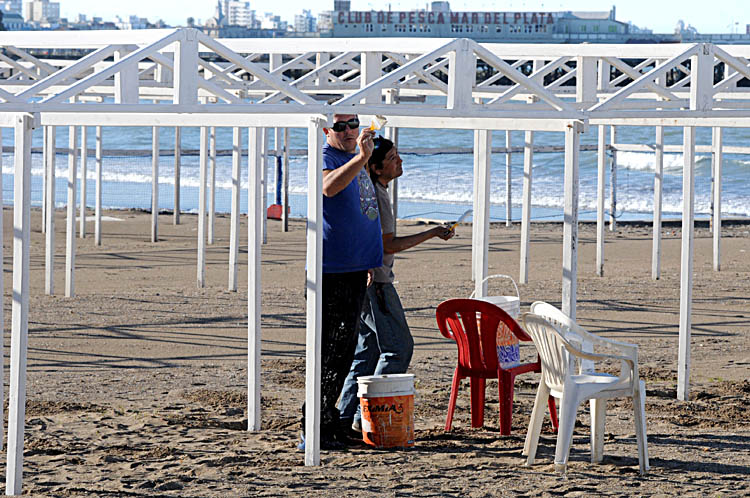 La postal de la costa marplatense, de a poco, empieza a adquirir la fisonomía del verano. En los balnearios de La Perla, Playa Grande y el Sur ya comenzaron a armar las carpas para la temporada que se viene. En los próximos días se irán sumandos desde las playas del norte hasta las del sur.