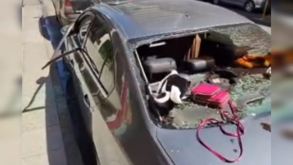 Un auto estacionado en el centro fue destrozado por delincuentes para robar las pertenencias que habían en el interior y la imagen provocó indignación entre las personas que pasaron por la cuadra.