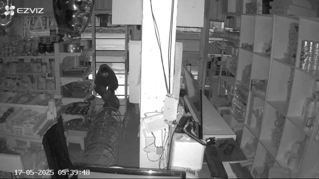 Un delincuente rompió la puerta de un comercio de la avenida Constitución e ingresó dos veces en la madrugada para robar el lugar: primero se llevó la caja registradora y luego, a las tres horas, mercadería que guardó en un bolso.