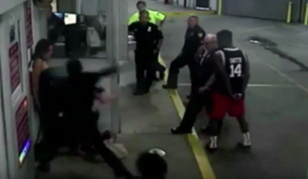 Las cámaras de seguridad del sitio donde ocurrió el hecho registraron lo que sucedió y las imágenes muestran al oficial Akinyemi Borisade, de 26 años, golpeando repetidamente a la mujer esposada.