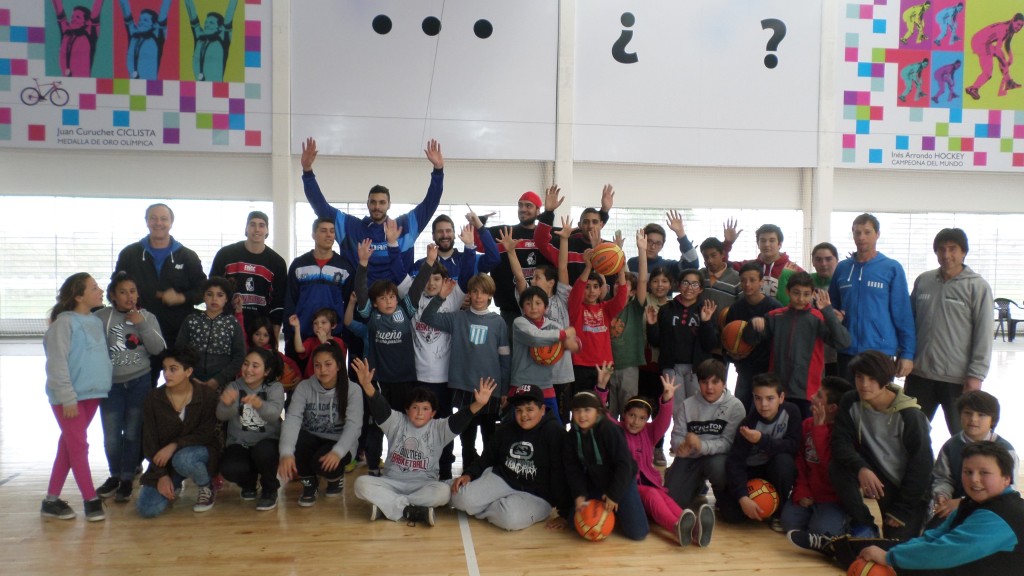 Grupo de chicos durante una actividad de básquetbol en el Polideportivo del barrio Libertad.
