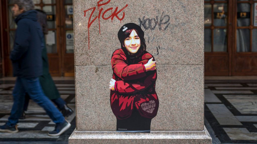 Mural con la imagen de Giulia Cecchettin, una joven italiana de 19 años, víctima de femicidio.
